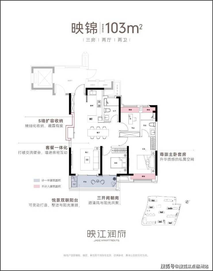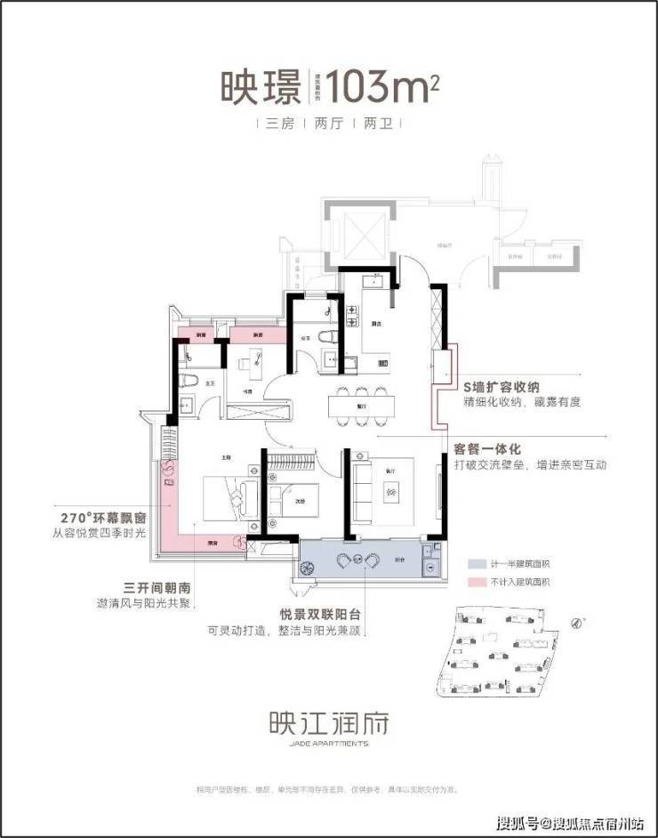 作为华润置地海派3.0作品,映江润府的卷,更在于其硬核的产品力,尤其在户型的设计上,堪称卷到极致.映江润府全盘仅规划89和103两种户型,每个都堪称王炸.